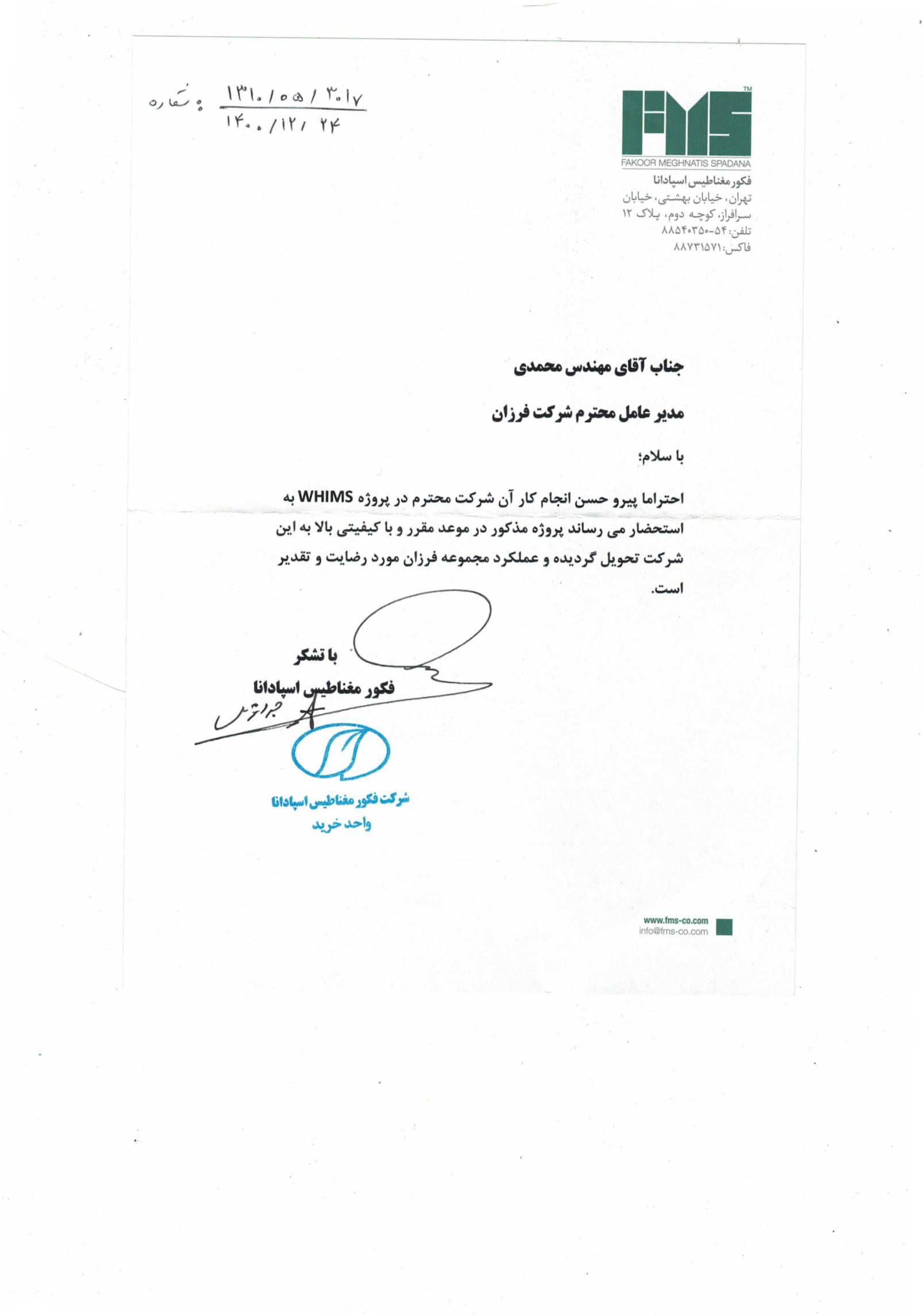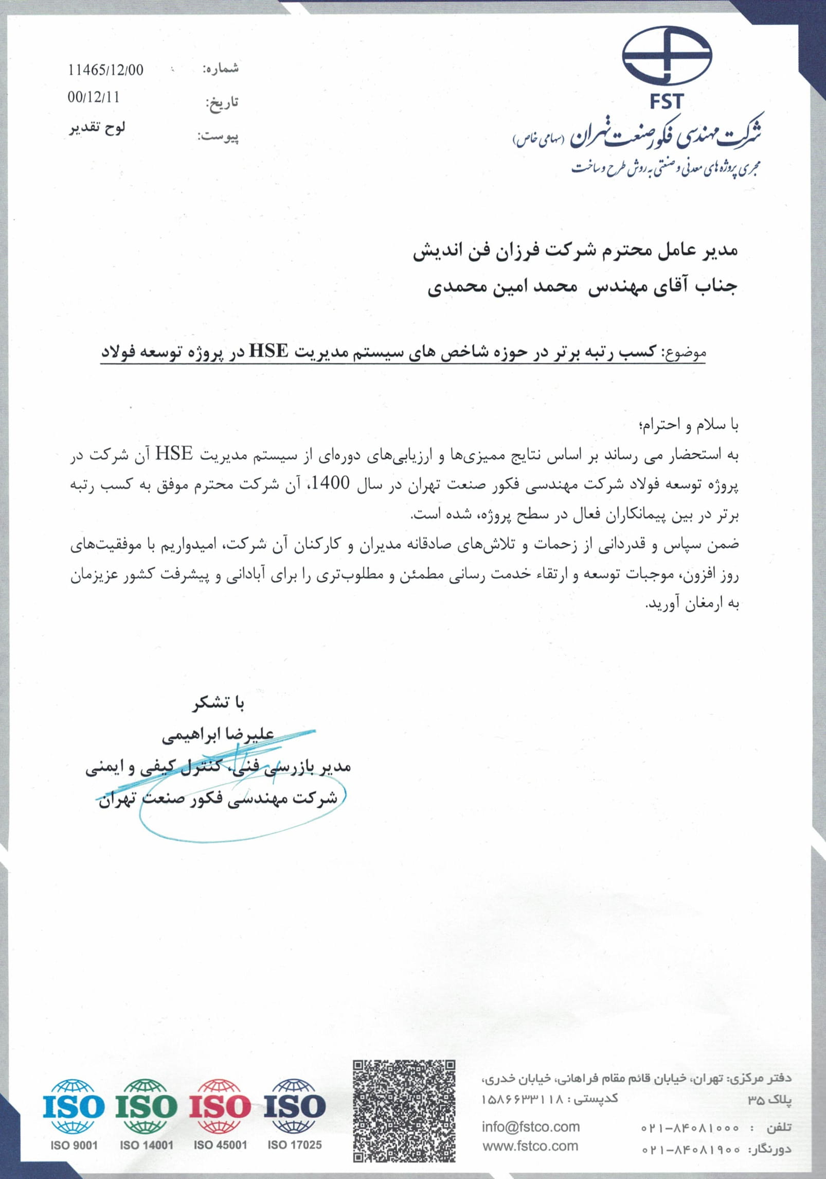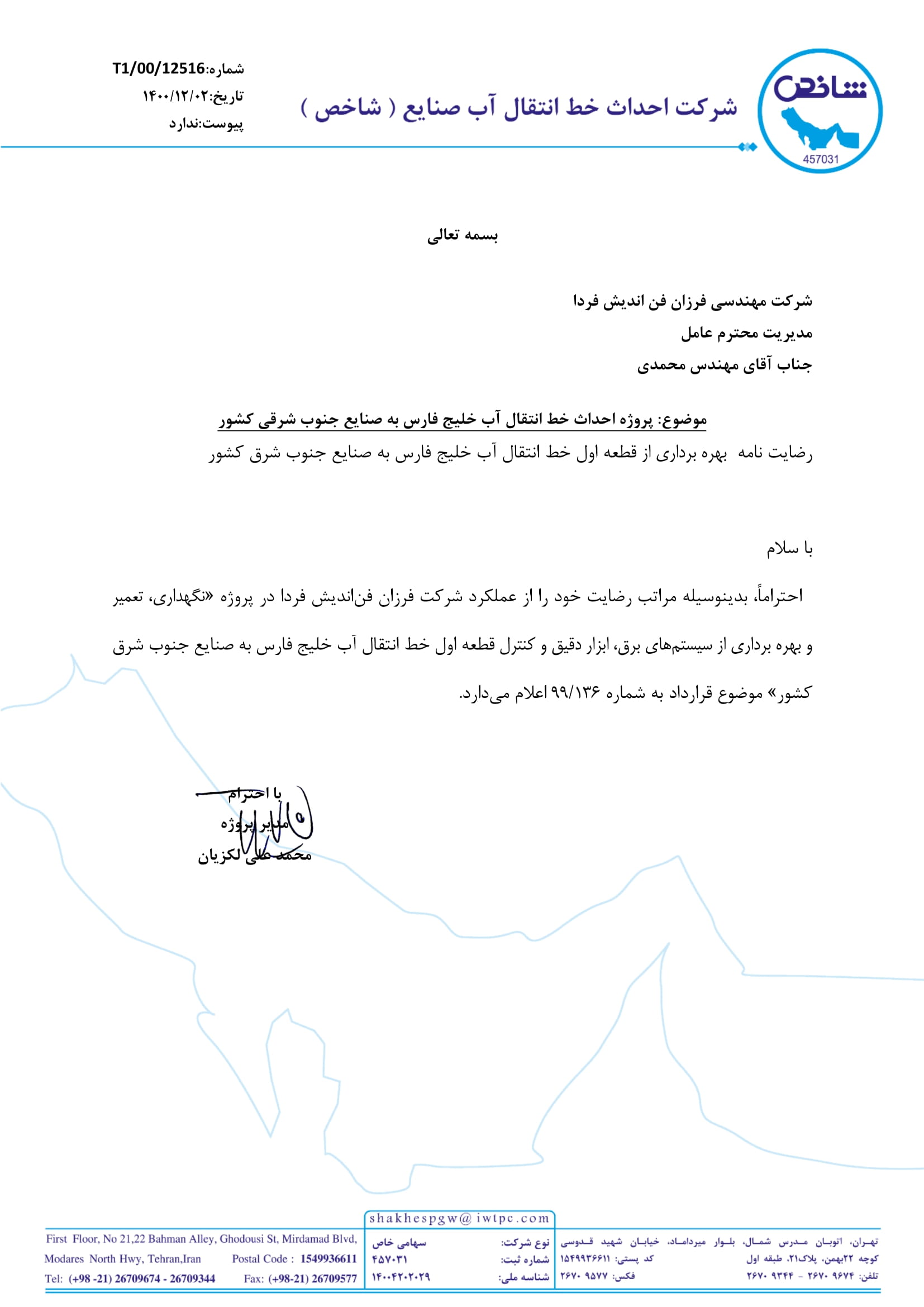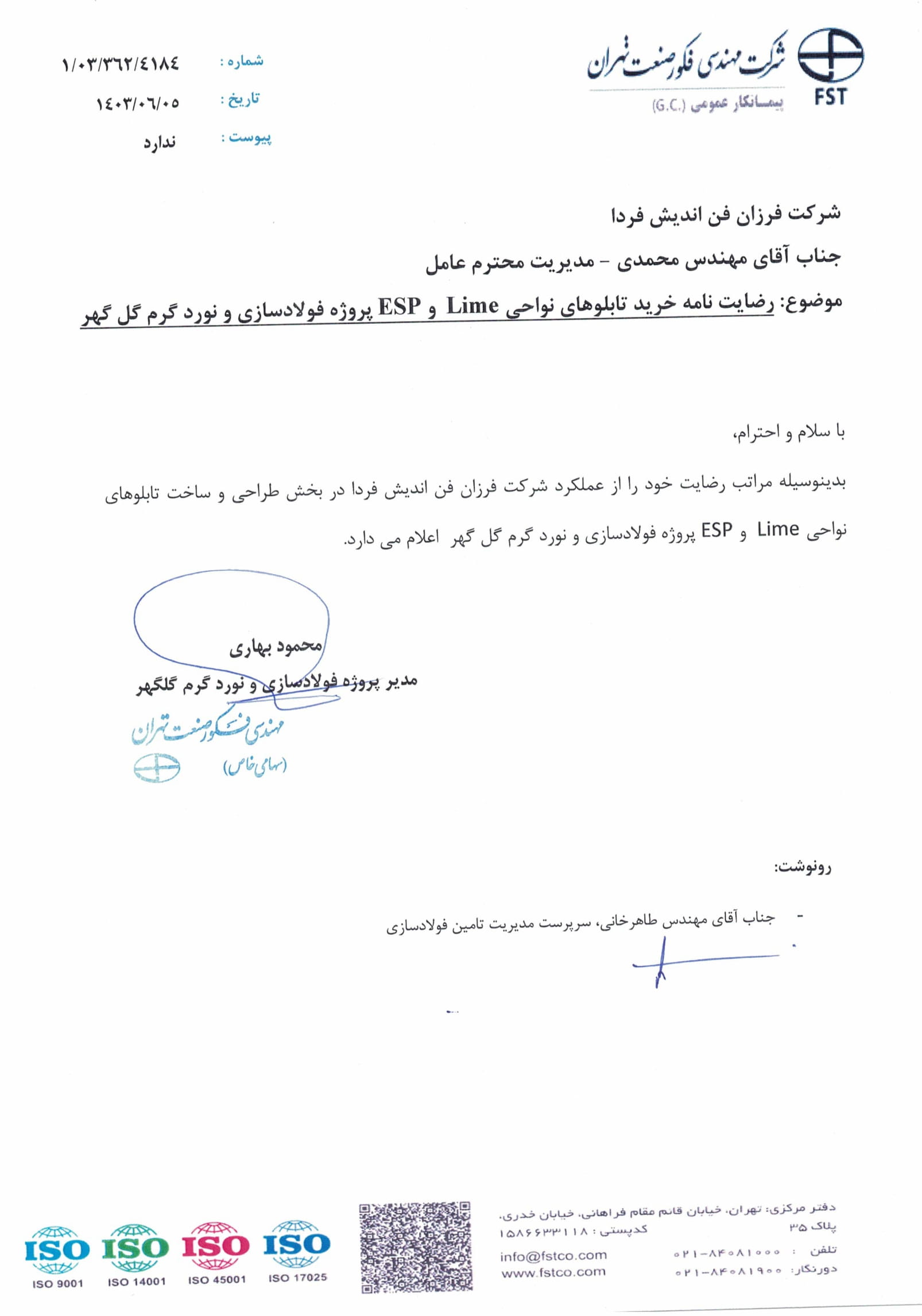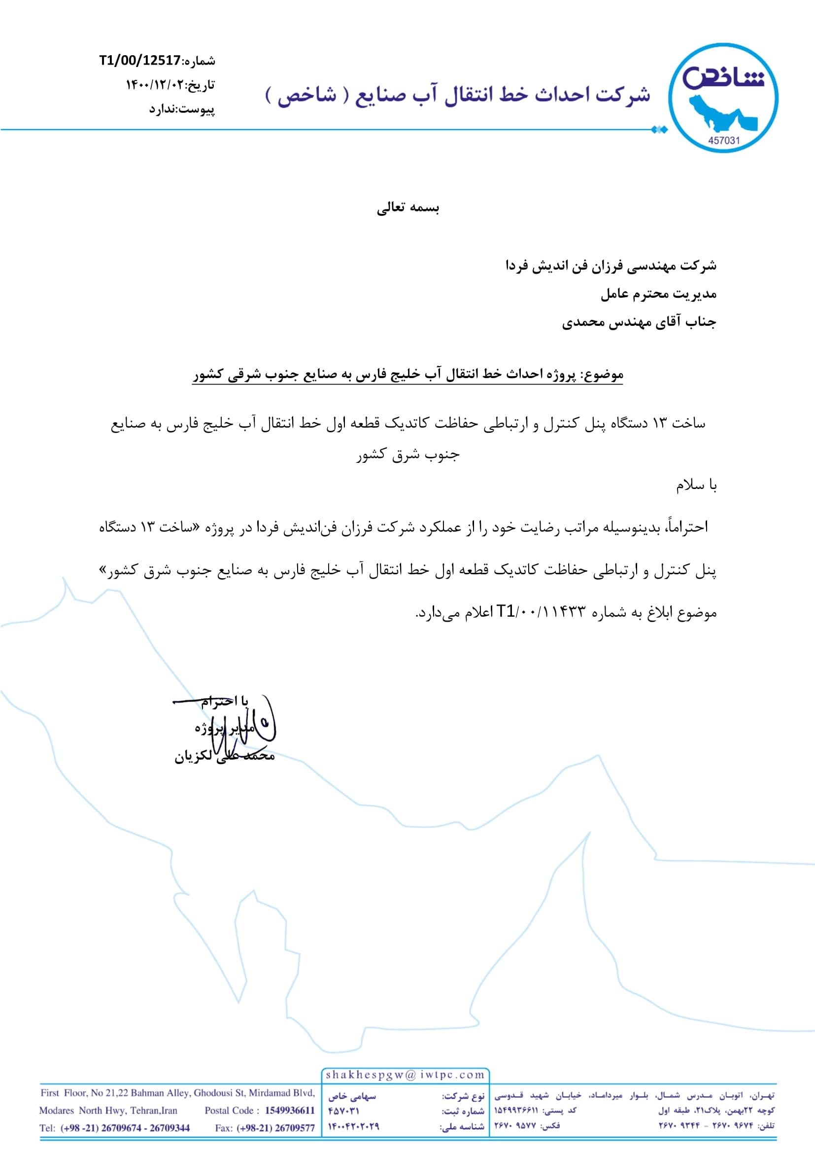 دارنده گواهی نامه عضویت سازندگان داخلی در فهرست بلند منابع واحد دستگاه مرکزی وزارت نفت
